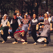 In 1933 the first Tulip Time office opened, incorporating festival functions with the Chamber of Commerce. By the mid-30’s Tulip Time was a nationally known event and nine-day festivals were staged up until World War II. It was also in 1933 that Ethel Perry, high school girls’ gym teacher, trained the Dutch Villagers, later known as Klompen Dancers, to perform Dutch folk dances. There were 12 dancers that first year, and they danced to “Where, Oh Where, Has My Little Dog Gone?” The number of dancers has grown to well over 1,400 in the 1990’s, including some 400 alumni dancers. All of the dancers were female at that time.